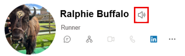 Circular profile photo of a buffalo in a fenced outdoor area, shown next to the name “Ralphie Buffalo” with the job title “Runner.” A microphone icon is highlighted in red to the right of the name.