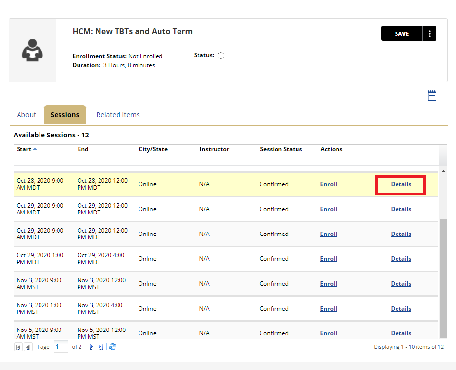 - Find the workshop you would like to attend and select Details. (See an example [4].)